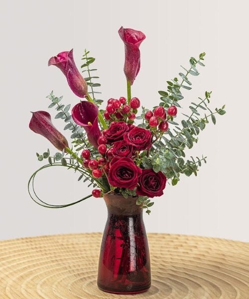この美しい誕生石のガーネットをイメージした 花束は、12月21日から1月19日生まれの努力家で向上心あふれる山羊座の方への贈り物に最適です。