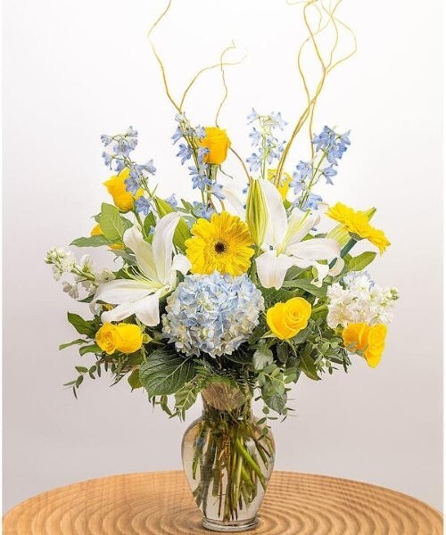 ブライトスカイブーケは、出産祝い、誕生日、記念日、そして春のあらゆるシーンにぴったりの華やかな一品です。