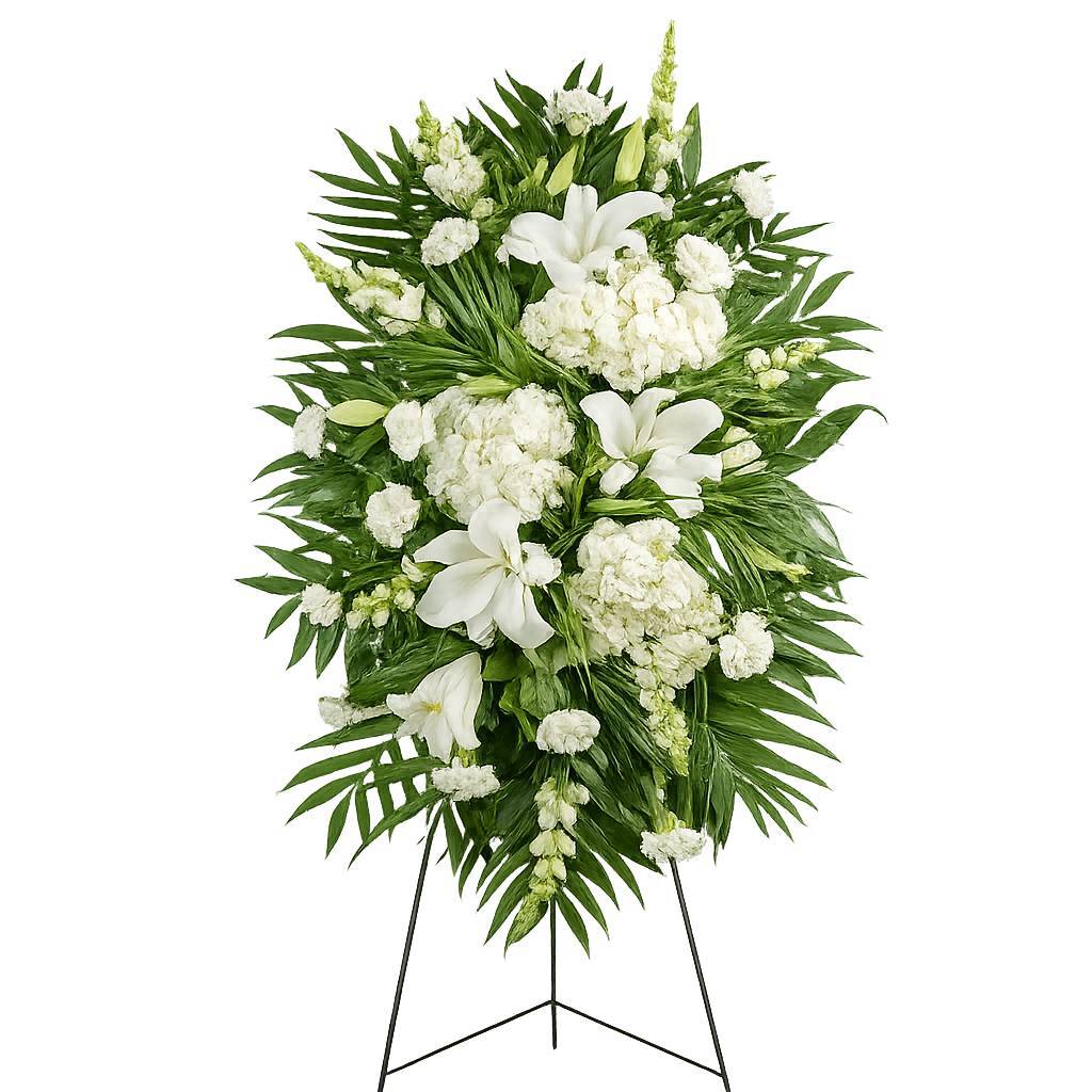 カルムスタンドスプレイは、深い悲しみの中にあっても、安らぎと慰めを象徴する供花です。