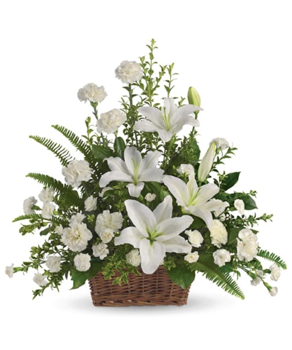 シンプルでありながら気品を感じさせるデザインは、葬儀や追悼式はもちろん、ご自宅へのお悔みの贈り物としてもふさわしいフラワーギフトです。